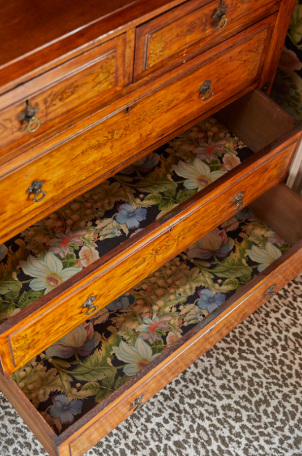 Wallpaper portions of wardrobes or drawers for a custom look.
